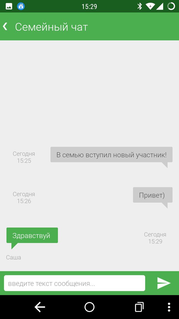 - Семейный чат, облегчающий общение между членами группы в любое время.
