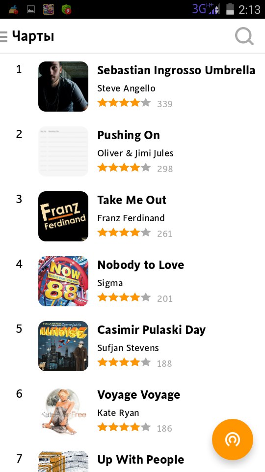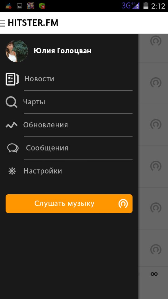 В выдвигающемся меню можно найти можно чарты популярнейших композиций , громкие новости из мира музыки и информацию о конкурсах, проводимых разработчиками.