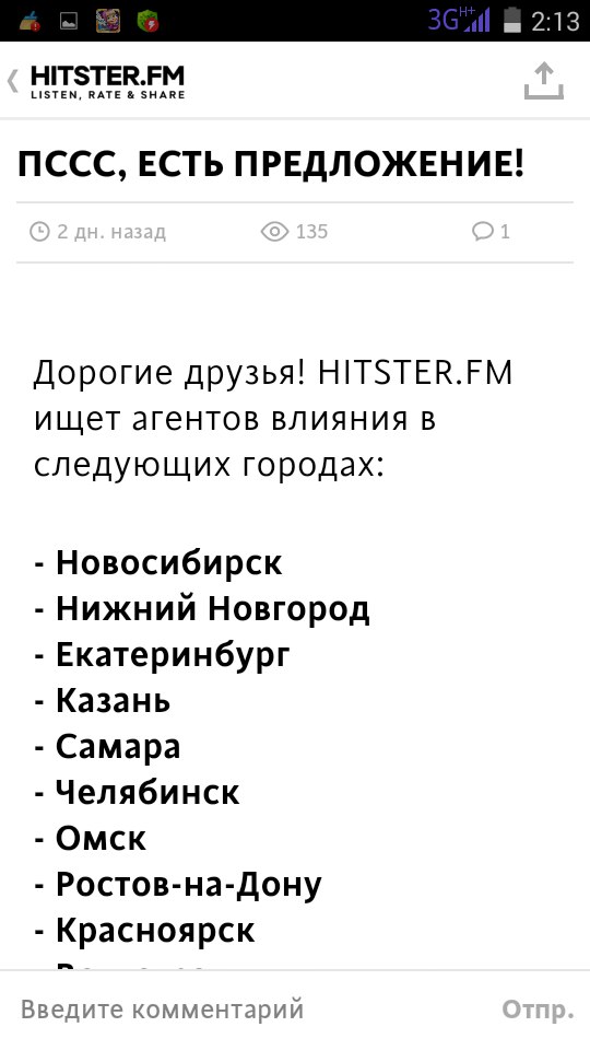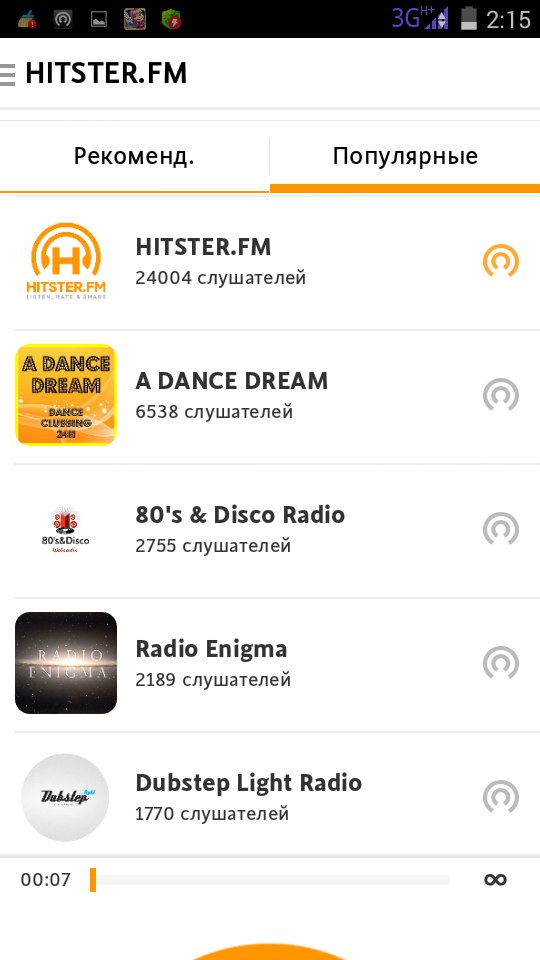 Все радиостанции в приложении раздоены на 2 группы – рекомендуемые (подобраны на основе предпочтений пользователя) и популярные (выбранные большинством). Из основного плеера HITSTER.FM доступны такие действия, как чат, кнопка «поделиться», нажать на паузу, оценить, добавить в избранное и получить информацию о исполнителе песни, её названии и жанре.