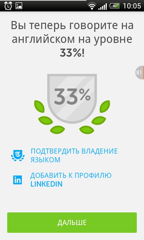Приятной стимуляцией будет ежедневное напоминание о тренировке. Существует 4 этапа занятий: легкий, обычный, серьезный и безумный. Чем выше нагрузка, тем эффективнее будет обучение. В легком режиме достаточно выполнить два задания в день, в то время, как в безумном следует выполнить аж 10 упражнений минимум! Если Ваши друзья пользуются Duolingo, то добавьте их в свой профиль. Это даст возможность соревноваться с ними.