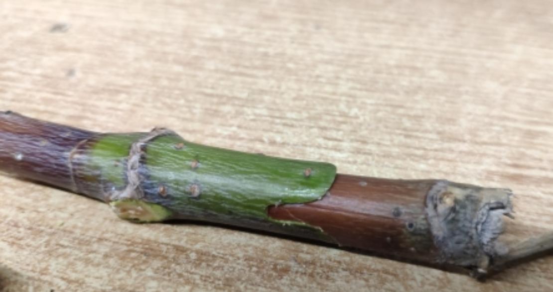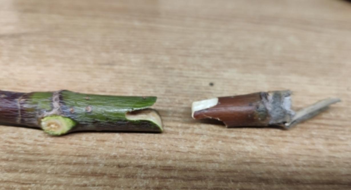 Здесь принцип действия довольно простой. Благодаря фигурному срезу, припой и подвой легко соединить по системе шип-паз. Это обеспечивает плотное прилегание элементов, их быструю приживаемость. Чтобы фрагменты быстро срослись, достаточно их плотно соединить, избегая смещения, плотно обмотайте лентой.