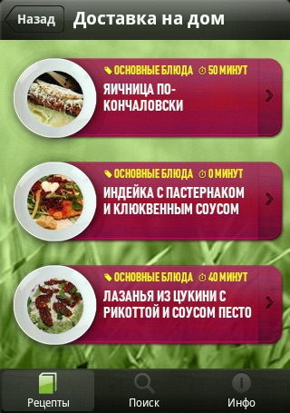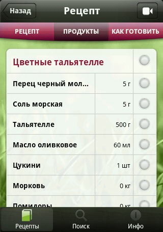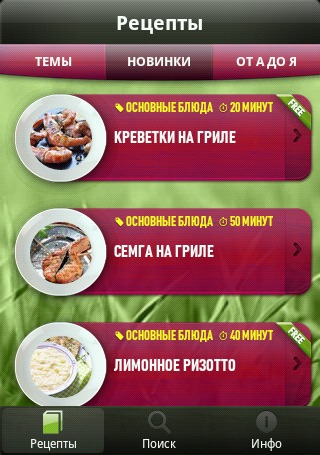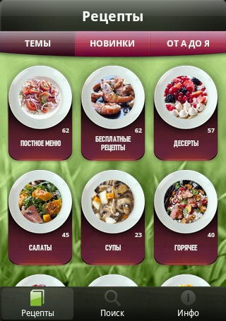 «Рецепты ЮлииВысоцкой» — это новое кулинарное приложение для Android, разработанное по самым высоким требованиям. Здесь собрано 1200 рецептов со всего мира. Ваше Android-устройство превращается в огромную кулинарную книгу! Это приложение появилось на Android совсем недавно, оно стало клоном популярного приложения «Рецепты Юлии Высоцкой» для iOs. Давайте познакомимся с ним подробнее. Первое, что бросается в глаза — это оформление. В главном меню находятся все подкатегории, которые разбиты на первые и вторые блюда, салаты и десерты, а так же национальные блюда. Дизайн и функционал гармонируют между собой. При выборе блюда, приложение подсказывает, какое количество продуктов и времени понадобится для приготовления. К таким приятным мелочам быстро привыкаешь.