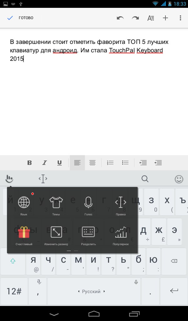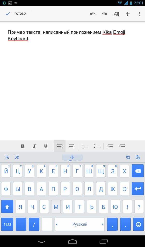 Так как я активно использую планшет для написания статей, мне очень важно наличие функции навигации и редактора текста. Она позволяет перемещать курсор, используя стрелочки на экране, а также функции выделения текста (копировать-вставить). Именно за эти качества меня привлекает данная клавиатура для Андроид.