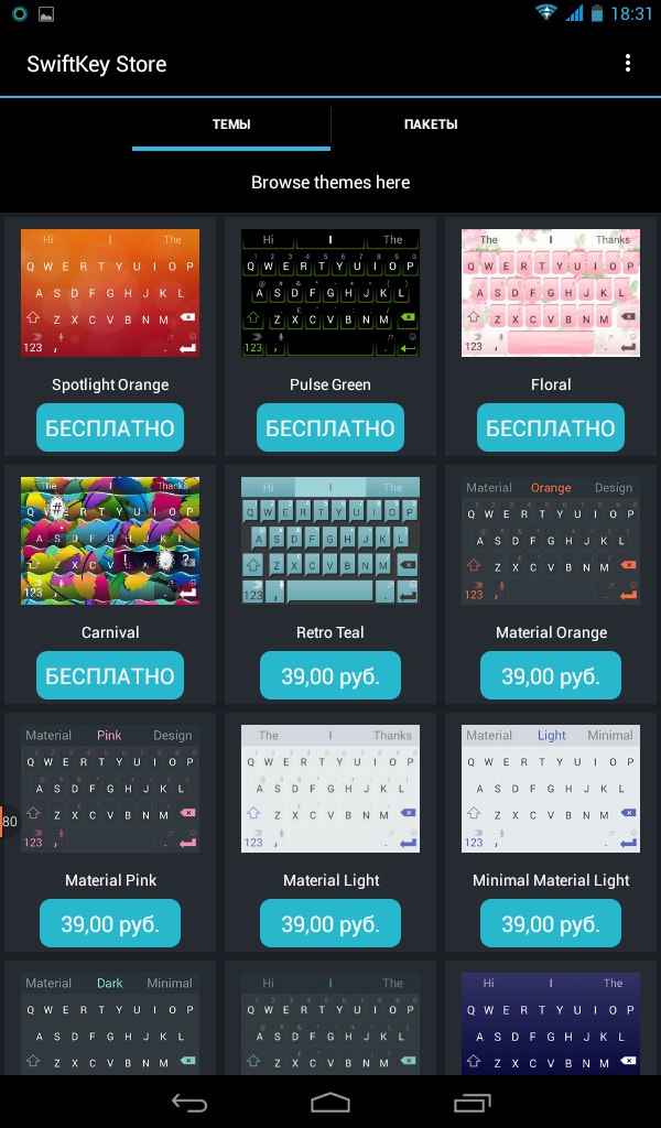 Стоит отметить, что SwiftKey имеет свой магазин, в котором можно скачать тему для клавиатуры. В основном, все темы платные, но, чтобы получить бесплатную, каждый день проводится конкурс, который выполнен в виде игры. В основном пользователь получает возможность бесплатно скачать определённую тему.