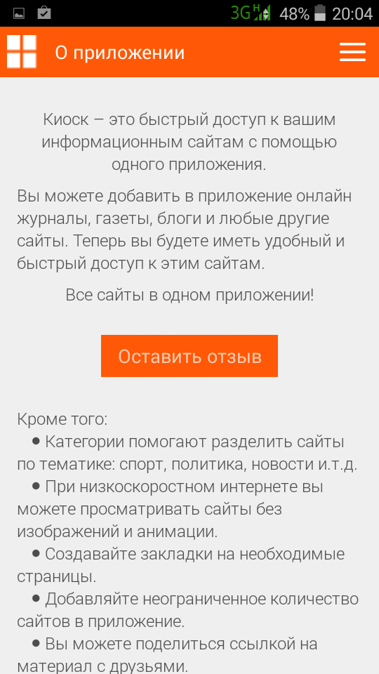 Больше нет надобности вводить адрес каждого сайта в браузер, все новостные сайты собраны в одном приложении! И при этом информация не искажена, сайты отображаются так, как их создали.