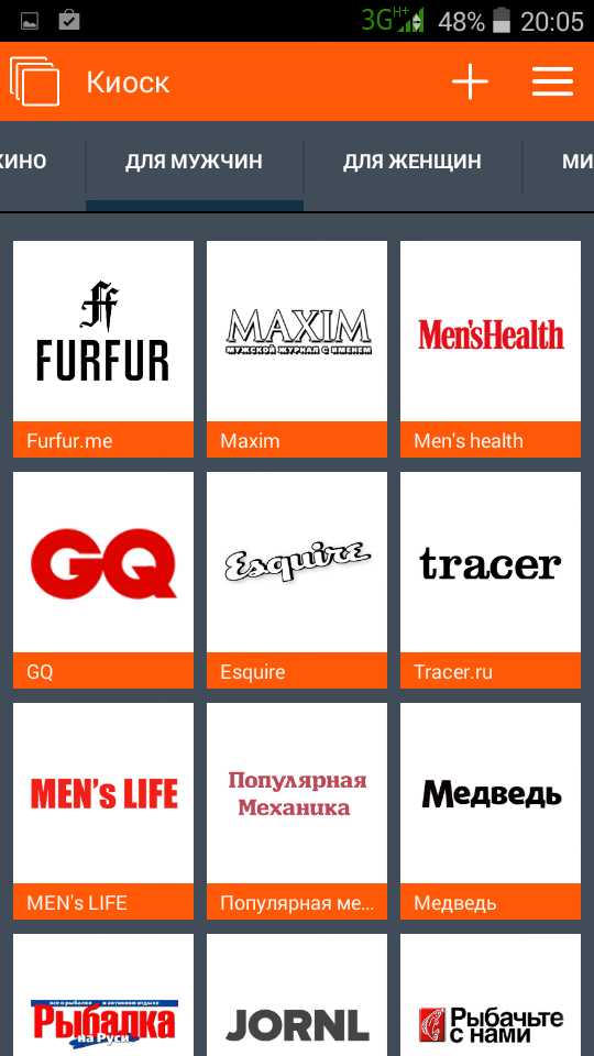 Для удобства пользования, сайты в приложении сортированы по категориям: