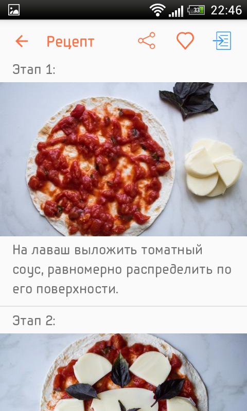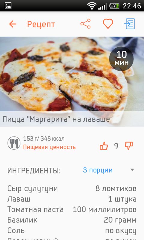 В «Избранное» можно сохранять не только целые меню, но и отдельные рецепты, коих в приложении более тысячи как обычных, так и диетических, вегетарианских и множество других.