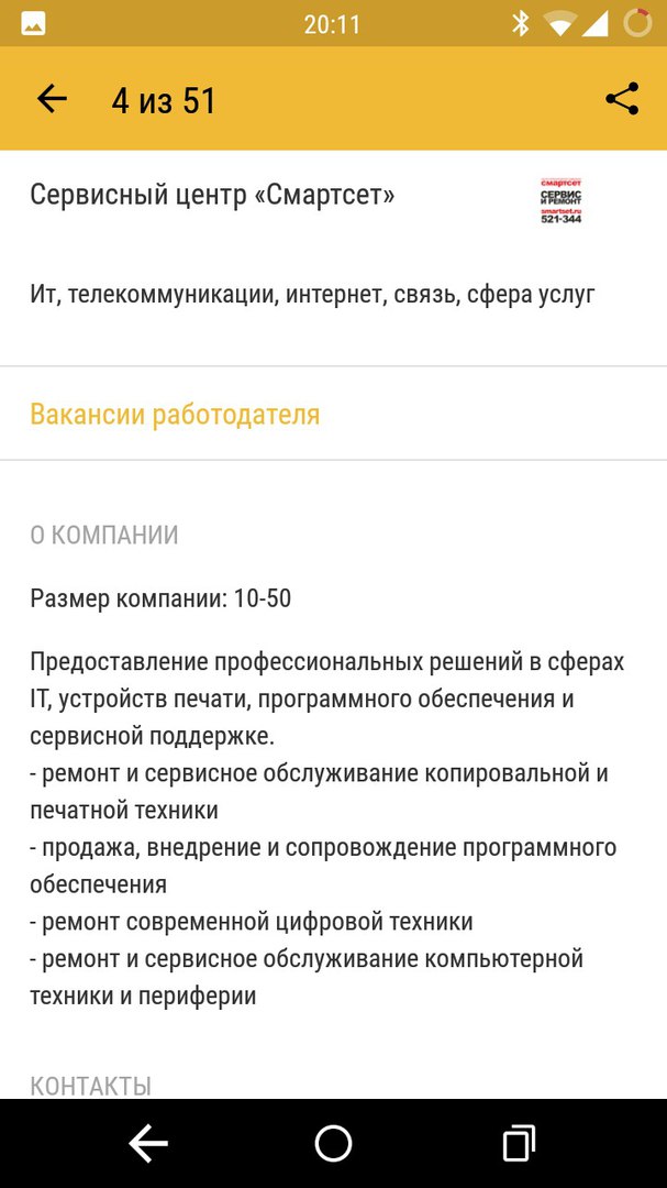 Отобразятся актуальные вакансии, далее вы можете настроить дополнительные фильтры. В приложении вы можете просмотреть информацию о работодателе, фотографии компании, зайти на корпоративный сайт и даже позвонить работодателю напрямую через приложение.